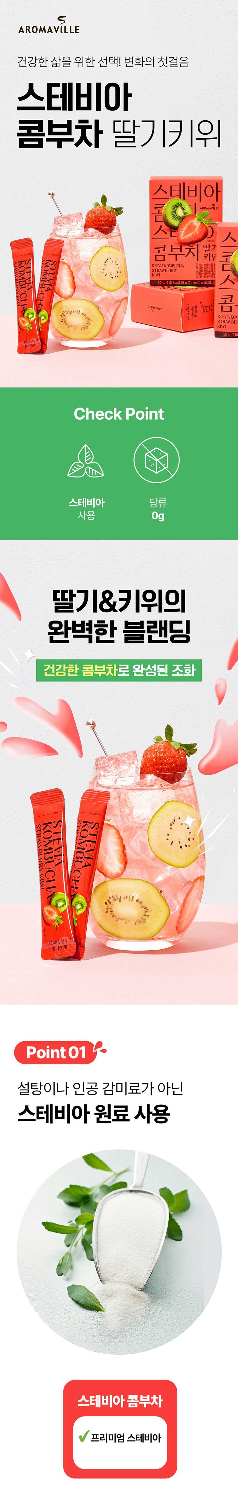 Aromavill Stevia Kombucha Strawberry Kiwi 10 Sticks, 2 Boxes