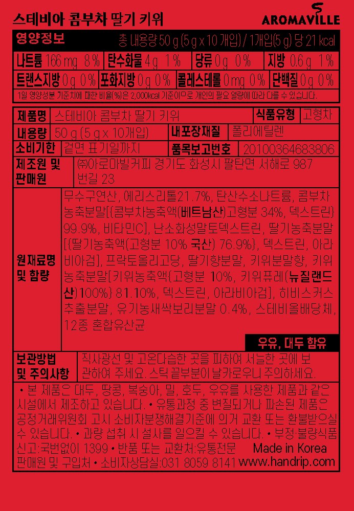 Aromavill stevia kombucha with refreshing strawberry kiwi flavor. Each box contains 10 convenient stick packets sweetened with natural stevia. 2 boxes of this healthy probiotic drink mix.
