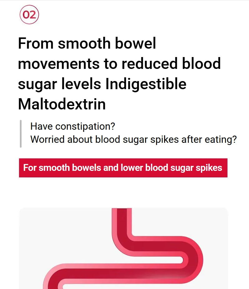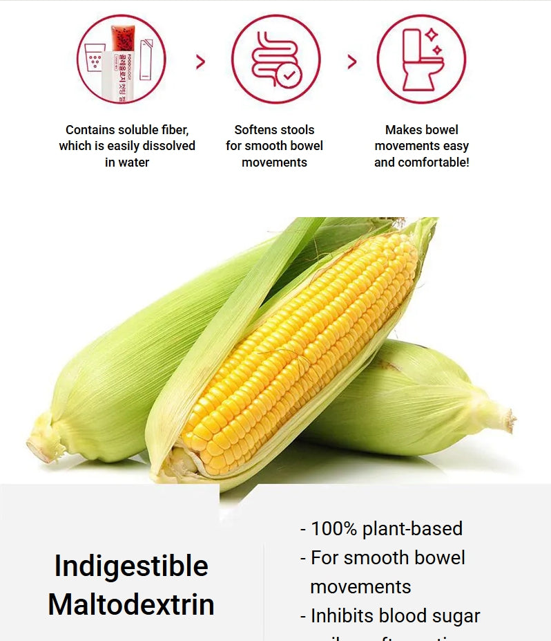 It also helps facilitate bowel movements with Fibersol-2, and helps inhibit postprandial blood sugar rise.