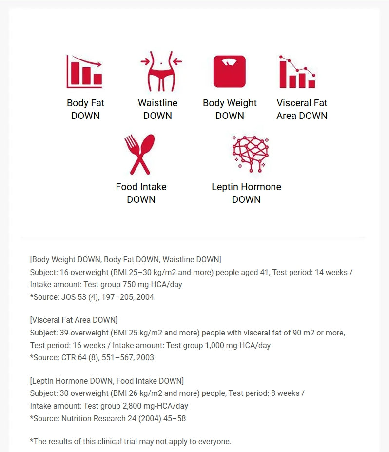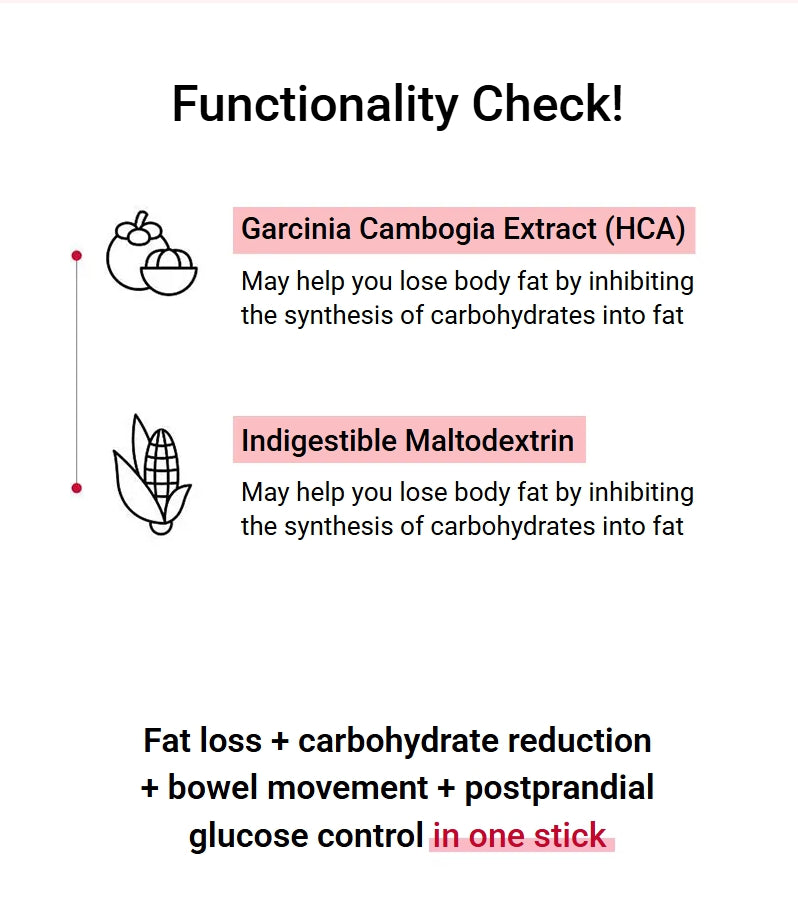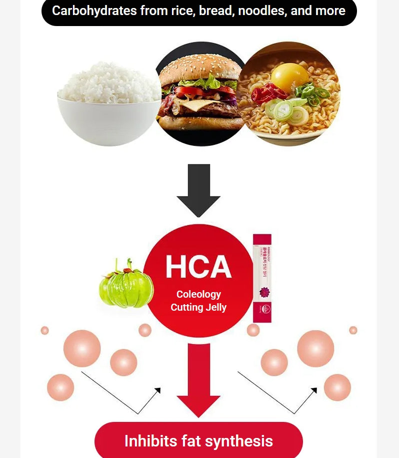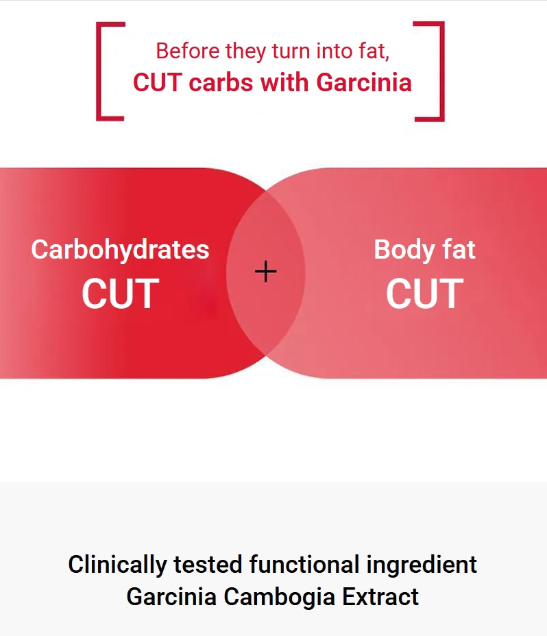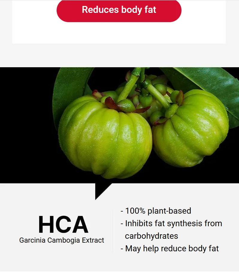 Contains Garcinia Cambogia Extract that inhibits fat synthesis from carbohydrates to help with reducing body fat.
