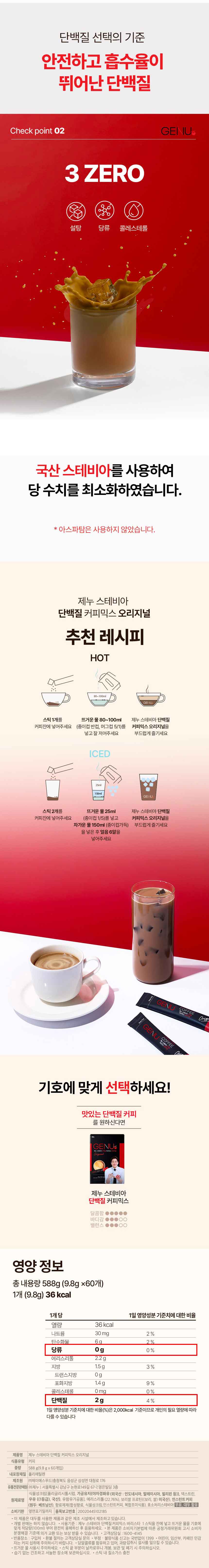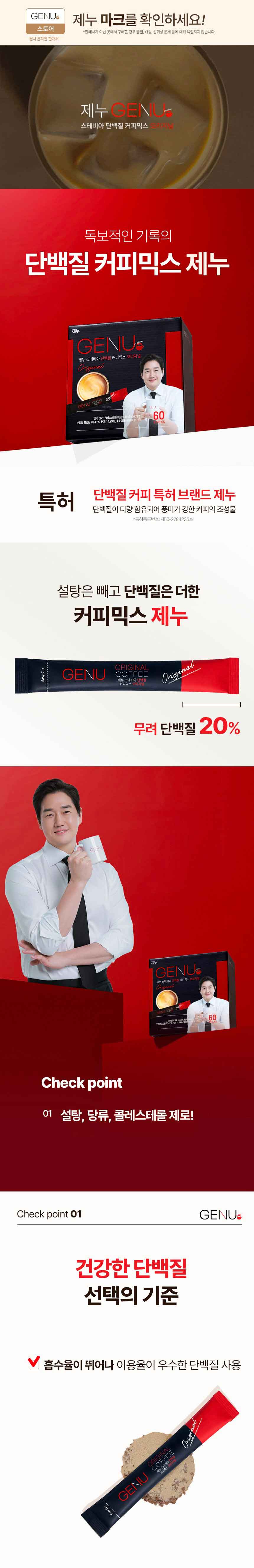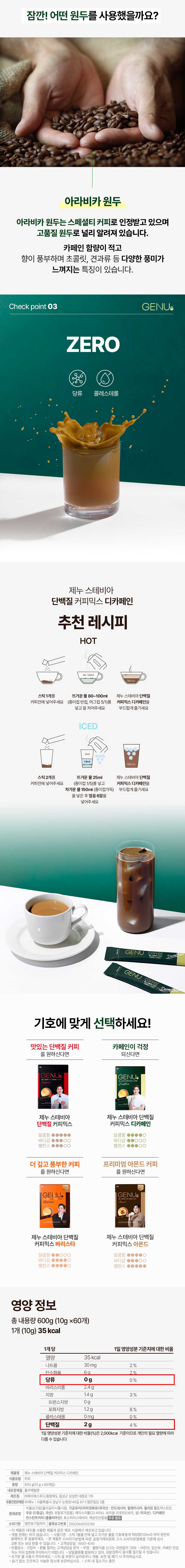 GENU Stevia Protein Coffee Mix 60 Sticks - 3 Types