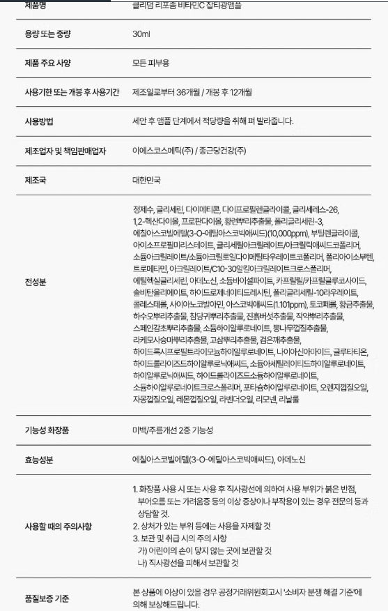 High-concentration vitamin C ampoule specifically formulated for intensive blemish and dark spot care. Advanced liposome technology ensures deep penetration for effective brightening and blemish improvement results.