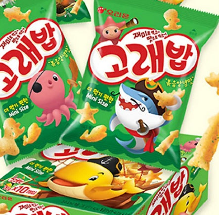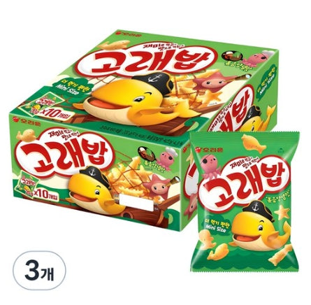 Orion Goraebap (Whale Snack) with roasted seasoning flavor. Each 20g pack of these iconic Korean puffed rice snacks delivers savory, slightly sweet taste. 30 individual packs perfect for snacking.