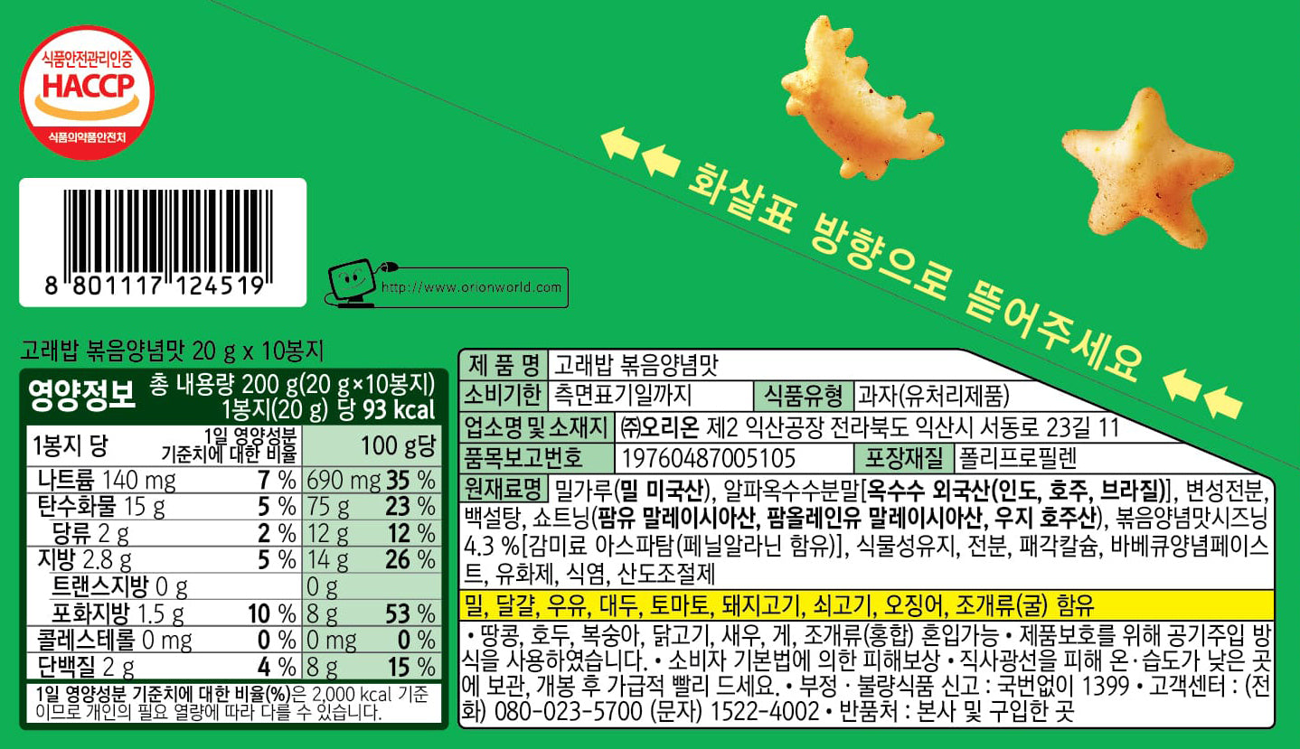 Orion Goraebap Roasted Seasoning Flavor 20g, 30 Packs