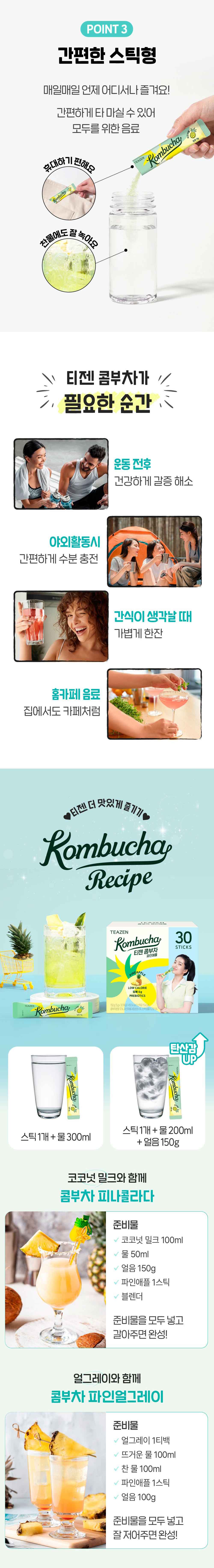 Teazen pineapple kombucha drink mix in convenient stick packets. 30 sticks of tropical pineapple flavored probiotic kombucha. Easy to prepare, delicious, and packed with healthy benefits.