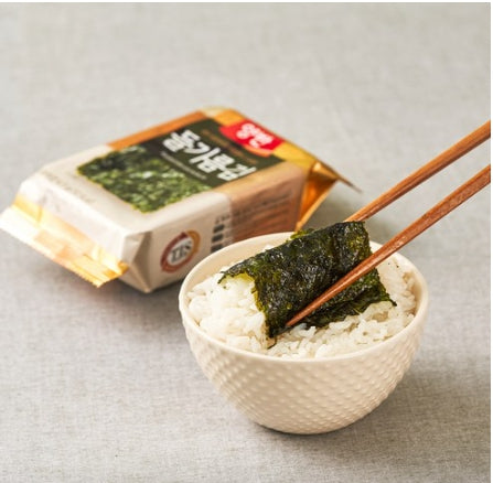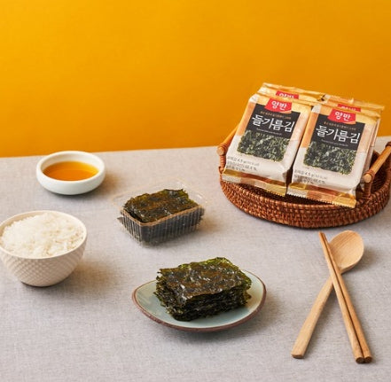 Yangban seasoned seaweed with aromatic perilla oil. Each 4.5g pack offers the unique nutty flavor of Korean perilla oil combined with crispy seaweed. 20 individual packs for convenient snacking.