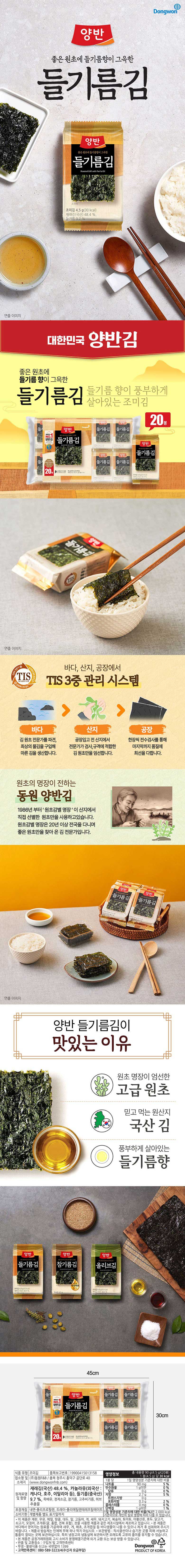 Yangban Perilla Oil Seaweed 4.5g, 20 Packs